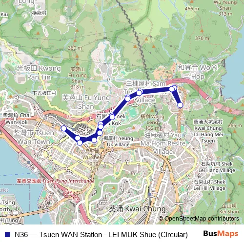 Click here to view the nearest N36 - Tsuen WAN Station - LEI MUK Shue (Circular) bus stop.