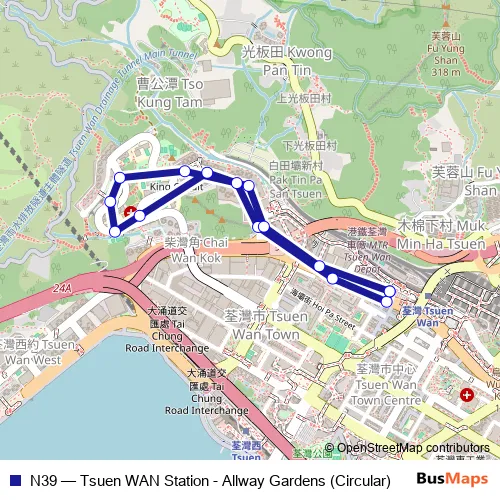 Bus N39 - Tsuen WAN Station - Allway Gardens (Circular): Full Schedule in Tsuen Wan
