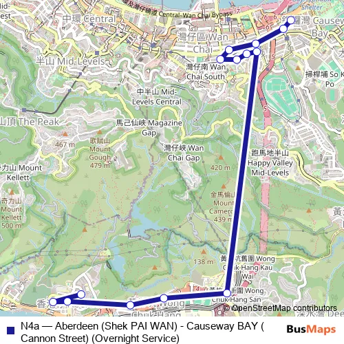 Click here to view the nearest N4a - Aberdeen (Shek PAI WAN) - Causeway BAY (Cannon Street) (Overnight Service) bus stop.