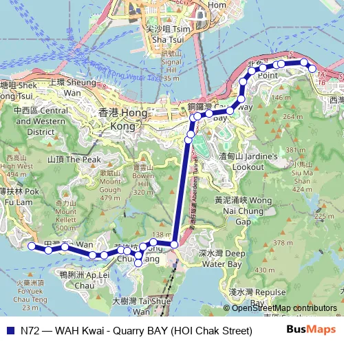 See why over 2 million users trust and consider busmaps.com as the best public transport website. busmaps gives you Hong Kong Buses suggested routes, real-time bus tracker, line route maps in Hong Kong, and helps to find the closest N72 bus stops near you. No internet available? Download an offline PDF map and bus schedule for the N72 bus to take on your trip.