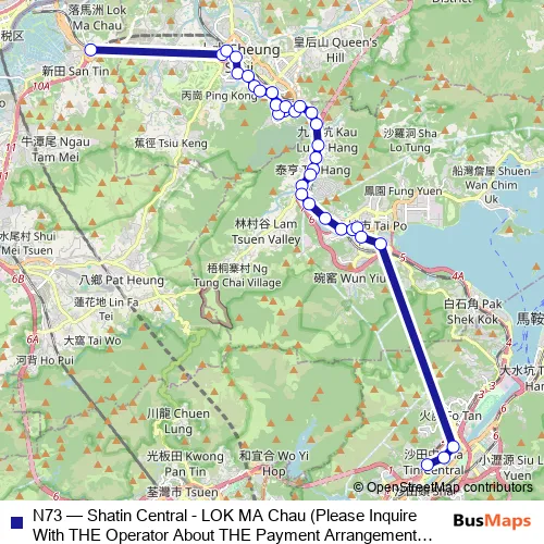 Click here to view the nearest N73 - Shatin Central - LOK MA Chau (Please Inquire With THE Operator About THE Payment Arrangement OF THE TWO-WAY Fare ON This Route.) bus stop.