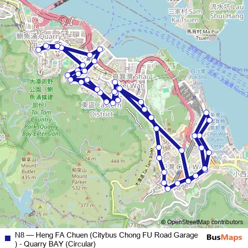 Click here to view the nearest N8 - Heng FA Chuen (Citybus Chong FU Road Garage) - Quarry BAY (Circular) bus stop.