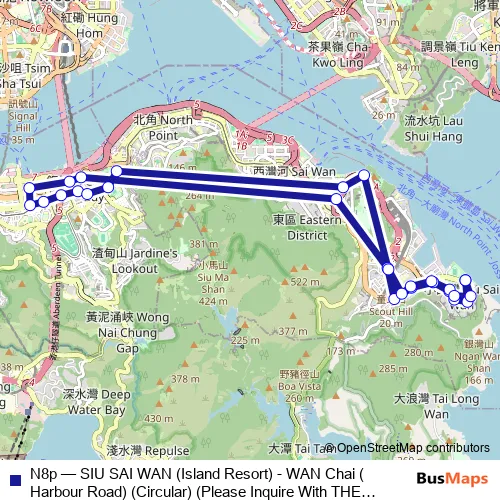 Click here to view the nearest N8p - SIU SAI WAN (Island Resort) - WAN Chai (Harbour Road) (Circular) (Please Inquire With THE Operator About THE Payment Arrangement OF THE TWO-WAY Fare ON This Route.) bus stop.