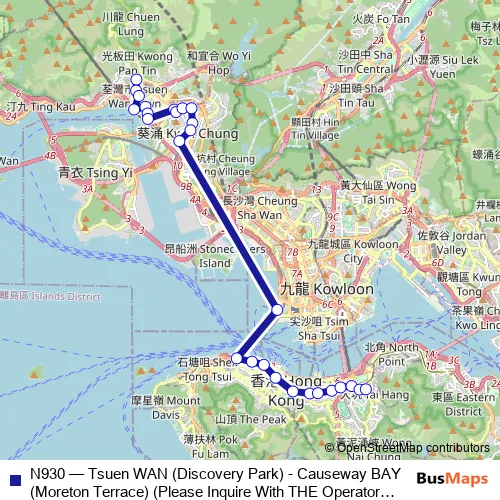 See why over 2 million users trust and consider busmaps.com as the best public transport website. busmaps gives you Tsuen Wan Buses suggested routes, real-time bus tracker, line route maps in Tsuen Wan, and helps to find the closest N930 bus stops near you. No internet available? Download an offline PDF map and bus schedule for the N930 bus to take on your trip.