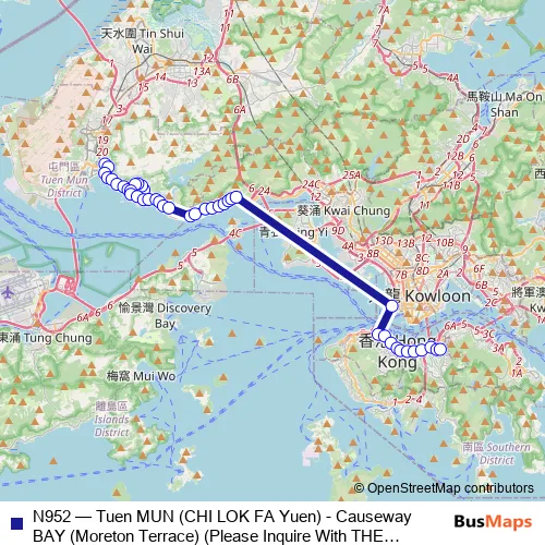 See why over 2 million users trust and consider busmaps.com as the best public transport website. busmaps gives you Tuen Mun Buses suggested routes, real-time bus tracker, line route maps in Tuen Mun, and helps to find the closest N952 bus stops near you. No internet available? Download an offline PDF map and bus schedule for the N952 bus to take on your trip.