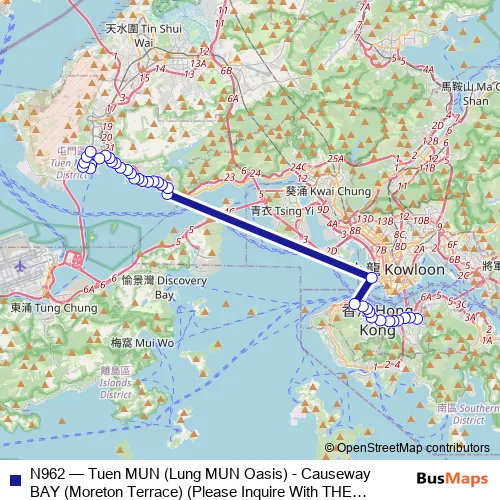 See why over 2 million users trust and consider busmaps.com as the best public transport website. busmaps gives you Tuen Mun Buses suggested routes, real-time bus tracker, line route maps in Tuen Mun, and helps to find the closest N962 bus stops near you. No internet available? Download an offline PDF map and bus schedule for the N962 bus to take on your trip.