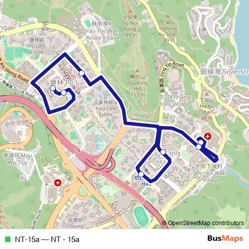 The first stop of the NT-15a bus route is Hang Hau (North) Public Transport Interchange and the last stop is Mau Tai Road, outside Block 2, Verbena Heights. NT-15a (NT - 15a) is operational during everyday.