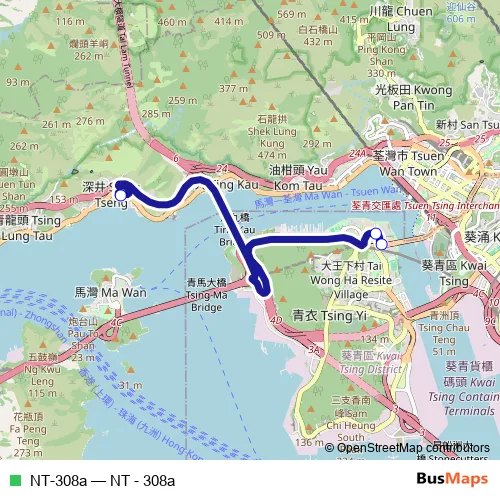 See why over 2 million users trust and consider busmaps.com as the best public transport website. busmaps gives you Tsuen Wan Buses suggested routes, real-time bus tracker, line route maps in Tsuen Wan, and helps to find the closest NT-308a bus stops near you. No internet available? Download an offline PDF map and bus schedule for the NT-308a bus to take on your trip.
