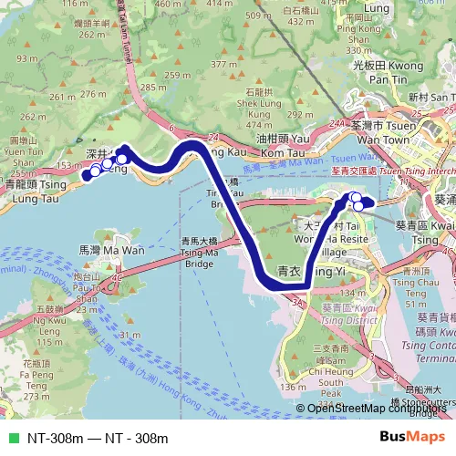See why over 2 million users trust and consider busmaps.com as the best public transport website. busmaps gives you Tsuen Wan Buses suggested routes, real-time bus tracker, line route maps in Tsuen Wan, and helps to find the closest NT-308m bus stops near you. No internet available? Download an offline PDF map and bus schedule for the NT-308m bus to take on your trip.