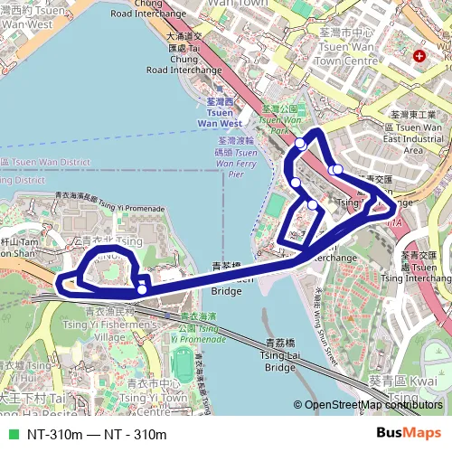 See why over 2 million users trust and consider busmaps.com as the best public transport website. busmaps gives you Tsuen Wan Buses suggested routes, real-time bus tracker, line route maps in Tsuen Wan, and helps to find the closest NT-310m bus stops near you. No internet available? Download an offline PDF map and bus schedule for the NT-310m bus to take on your trip.
