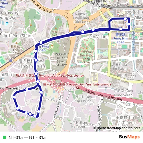 See why over 2 million users trust and consider busmaps.com as the best public transport website. busmaps gives you Yuen Long Buses suggested routes, real-time bus tracker, line route maps in Yuen Long, and helps to find the closest NT-31a bus stops near you. No internet available? Download an offline PDF map and bus schedule for the NT-31a bus to take on your trip.