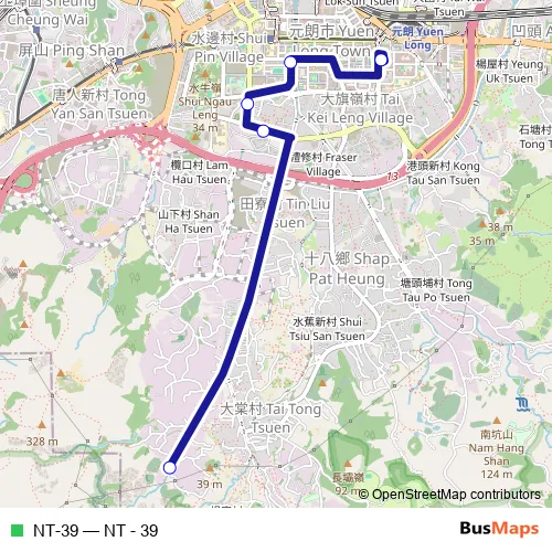 See why over 2 million users trust and consider busmaps.com as the best public transport website. busmaps gives you Yuen Long Buses suggested routes, real-time bus tracker, line route maps in Yuen Long, and helps to find the closest NT-39 bus stops near you. No internet available? Download an offline PDF map and bus schedule for the NT-39 bus to take on your trip.