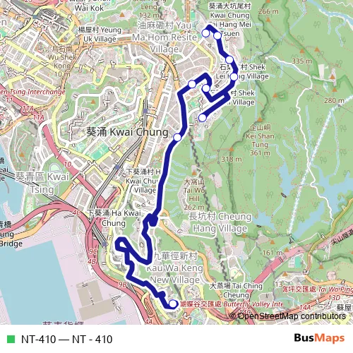 See why over 2 million users trust and consider busmaps.com as the best public transport website. busmaps gives you Tsuen Wan Buses suggested routes, real-time bus tracker, line route maps in Tsuen Wan, and helps to find the closest NT-410 bus stops near you. No internet available? Download an offline PDF map and bus schedule for the NT-410 bus to take on your trip.