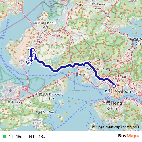 See why over 2 million users trust and consider busmaps.com as the best public transport website. busmaps gives you Tuen Mun Buses suggested routes, real-time bus tracker, line route maps in Tuen Mun, and helps to find the closest NT-48s bus stops near you. No internet available? Download an offline PDF map and bus schedule for the NT-48s bus to take on your trip.