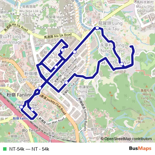 The first stop of the NT-54k bus route is Public Light Bus (Scheduled) Service Terminus at Fanling Station and the last stop is Public Light Bus (Scheduled) Service Terminus at Fanling Station. NT-54k (NT - 54k) is operational during on weekdays.