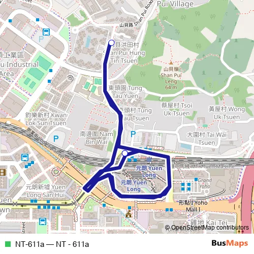The first stop of the NT-611a bus route is Yuen Long Station (North) Public Transport Interchange and the last stop is Yuen Long Station (North) Public Transport Interchange. NT-611a (NT - 611a) is operational during everyday.