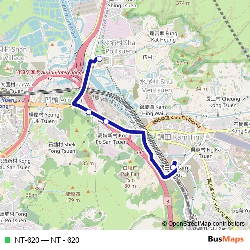 The first stop of the NT-620 bus route is Kam Sheung Road Station Public Transport Interchange and the last stop is Park Yoho Transport Interchange. NT-620 (NT - 620) is operational during everyday.