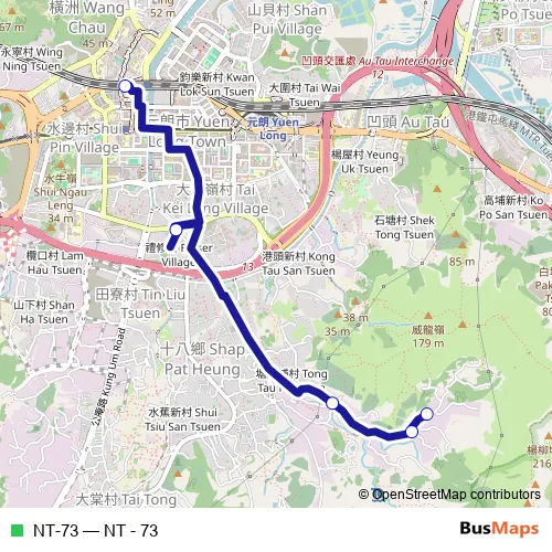 The first stop of the NT-73 bus route is Yuen Long (Sung Shan San Tsuen) Minibus Terminus and the last stop is Ma Wang Road, near Long Ping Station. NT-73 (NT - 73) is operational during on weekdays.