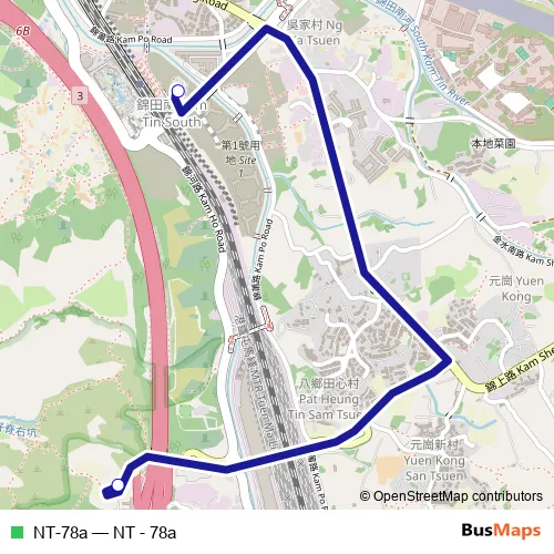 The first stop of the NT-78a bus route is Kam Sheung Road Station Public Transport Interchange and the last stop is Pat Heung Road, (near Tai Lam Bus-Bus Interchange) Minibus Terminus. NT-78a (NT - 78a) is operational during on weekdays.