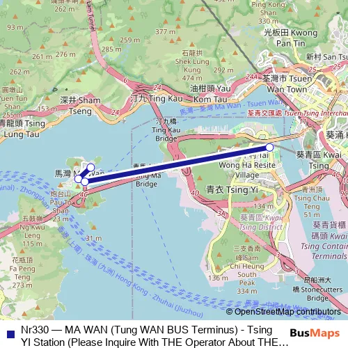 Click here to view the nearest Nr330 - MA WAN (Tung WAN BUS Terminus) - Tsing YI Station (Please Inquire With THE Operator About THE Payment Arrangement OF THE TWO-WAY Fare ON This Route.) bus stop.