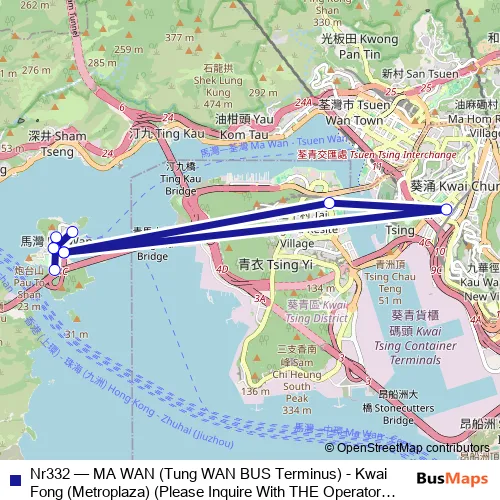 Click here to view the nearest Nr332 - MA WAN (Tung WAN BUS Terminus) - Kwai Fong (Metroplaza) (Please Inquire With THE Operator About THE Payment Arrangement OF THE TWO-WAY Fare ON This Route.) bus stop.