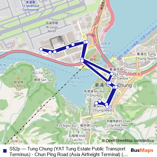 Bus S52p - Tung Chung (YAT Tung Estate Public Transport Terminus) - Chun Ping Road (Asia Airfreight Terminal) (Circular) Schedule in Tuen Mun
