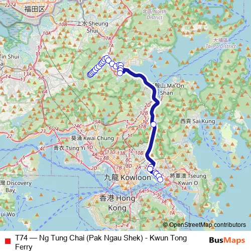 See why over 2 million users trust and consider busmaps.com as the best public transport website. busmaps gives you Tai Po Buses suggested routes, real-time bus tracker, line route maps in Tai Po, and helps to find the closest T74 bus stops near you. No internet available? Download an offline PDF map and bus schedule for the T74 bus to take on your trip.