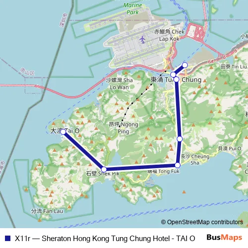 Click here to view the nearest X11r - Sheraton Hong Kong Tung Chung Hotel - TAI O bus stop.