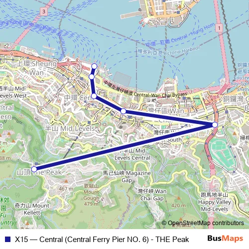 Bus X15 - Central (Central Ferry Pier NO. 6) - THE Peak Schedule in Central