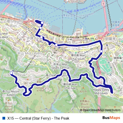 Click here to view the nearest X15 - Central (Star Ferry) - The Peak bus stop.