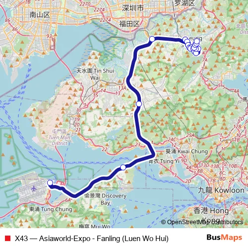 Bus X43 - Asiaworld-Expo - Fanling (Luen Wo Hui): Full Schedule in Tai Po