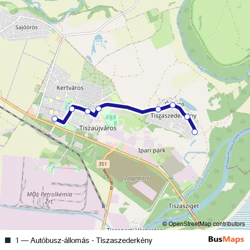 Bus 1 - Autóbusz-állomás - Tiszaszederkény in Tiszaujvaros: Stops & Timetable