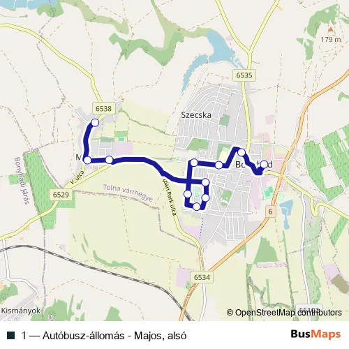 Bus 1 - Autóbusz-állomás - Majos, alsó Schedule in Bonyhad