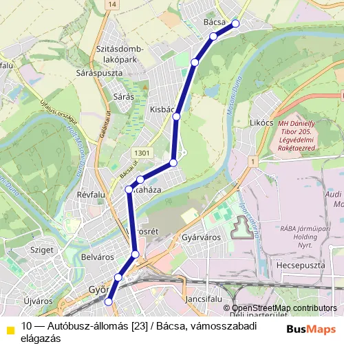 Bus 10 - Autóbusz-állomás 23 / Bácsa, vámosszabadi elágazás in Gyor: Stops & Timetable
