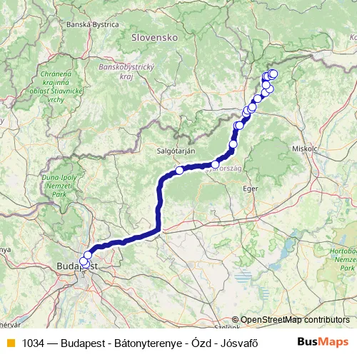 Bus 1034 - Budapest - Bátonyterenye - Ózd - Jósvafő: Full Schedule in Putnok