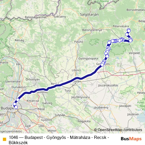 Click here to view the nearest 1046 - Budapest - Gyöngyös - Mátraháza - Recsk - Bükkszék bus stop.