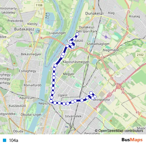 See why over 2 million users trust and consider busmaps.com as the best public transport website. busmaps gives you Budapest Buses suggested routes, real-time bus tracker, line route maps in Budapest, and helps to find the closest 104a bus stops near you. No internet available? Download an offline PDF map and bus schedule for the 104a bus to take on your trip.