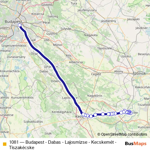Click here to view the nearest 1081 - Budapest - Dabas - Lajosmizse - Kecskemét - Tiszakécske bus stop.