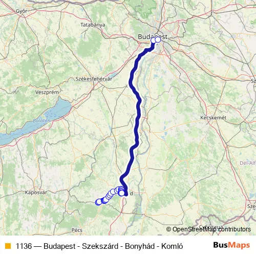 Bus 1136 - Budapest - Szekszárd - Bonyhád - Komló Schedule in Szekszard