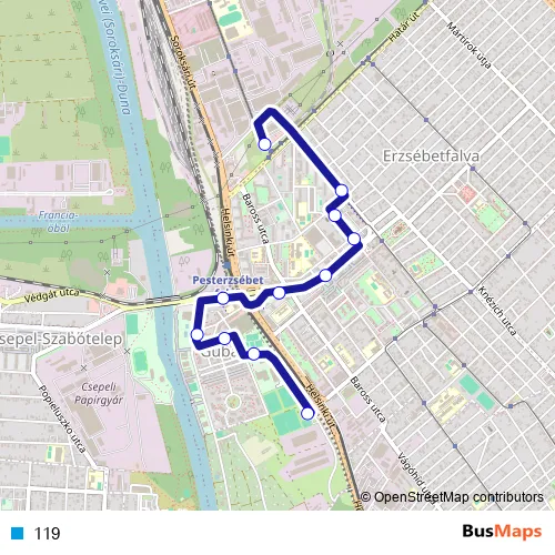 See why over 2 million users trust and consider busmaps.com as the best public transport website. busmaps gives you Budapest Buses suggested routes, real-time bus tracker, line route maps in Budapest, and helps to find the closest 119 bus stops near you. No internet available? Download an offline PDF map and bus schedule for the 119 bus to take on your trip.