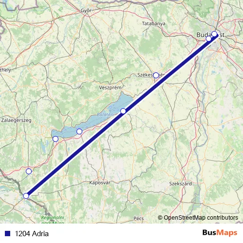 The first stop of the 1204 Adria rail route is Budapest-Keleti and the last stop is Gyékényes. 1204 Adria is operational during everyday.