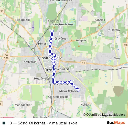 13 Bus - Sóstói úti kórház - Alma utcai iskola