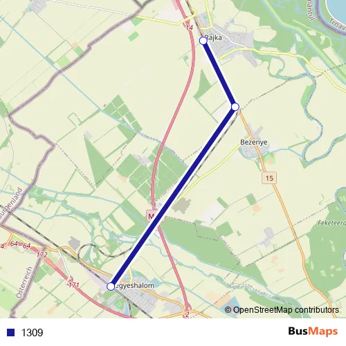 The first stop of the 1309 rail route is Rajka and the last stop is Hegyeshalom. 1309 is operational during everyday.