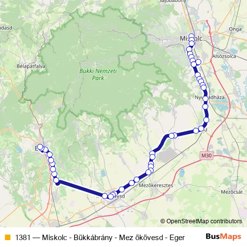 Bus 1381 - Miskolc - Bükkábrány - Mez őkövesd - Eger: Full Schedule in Miskolc