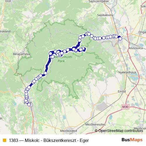 The first stop of the 1383 bus route is Eger, vasútállomás and the last stop is Miskolc, Tiszai pályaudvar. 1383 (Miskolc - Bükszentkereszt - Eger) is operational during on weekends.