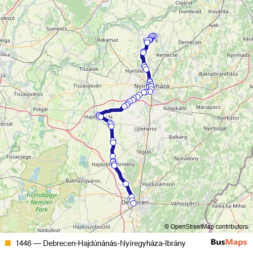 Click here to view the nearest 1446 - Debrecen-Hajdúnánás-Nyíregyháza-Ibrány bus stop.