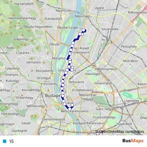 See why over 2 million users trust and consider busmaps.com as the best public transport website. busmaps gives you Budapest Buses suggested routes, real-time bus tracker, line route maps in Budapest, and helps to find the closest 15 bus stops near you. No internet available? Download an offline PDF map and bus schedule for the 15 bus to take on your trip.