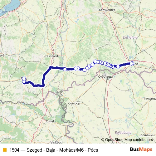 Click here to view the nearest 1504 - Szeged - Baja - Mohács/M6 - Pécs bus stop.