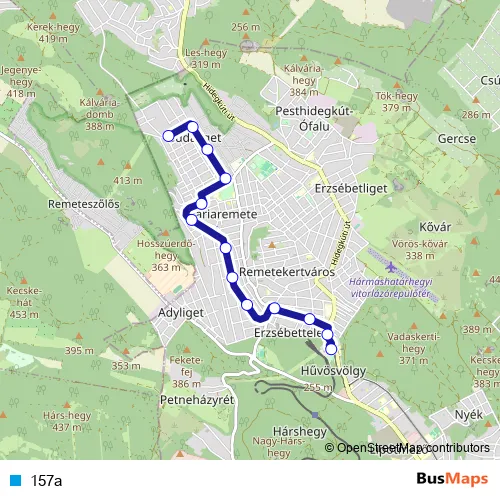 See why over 2 million users trust and consider busmaps.com as the best public transport website. busmaps gives you Budapest Buses suggested routes, real-time bus tracker, line route maps in Budapest, and helps to find the closest 157a bus stops near you. No internet available? Download an offline PDF map and bus schedule for the 157a bus to take on your trip.