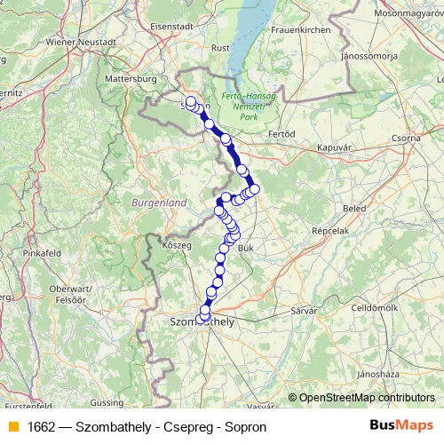 Bus 1662 - Szombathely - Csepreg - Sopron: Full Schedule in Szombathely